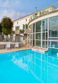 Piscine intérieure et extérieure chauffée, sauna, hammam (bain turc), salle de sport de février à novembre.
